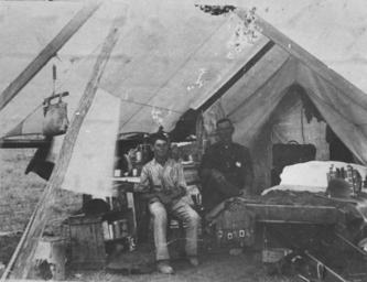 | Keywords: StateLibQld 2 111084 Shearers' camp at Aramac, 1910-1920.jpg en Shearers' camp at Aramac 1910-1920 Man and a boy at a shearers' camp at Aramac They pose on chairs in their tent Various items including boxes tins untensils bags books and a bed can be seen between 1910 1920 handle 10462/deriv/131409 Item is held by John Oxley Library State Library of Queensland PD-Australia StateLibQld-License Black and white photographs Portraits of Queensland Children of Queensland Campsites in Australia Aramac Queensland 1910 in Australia |