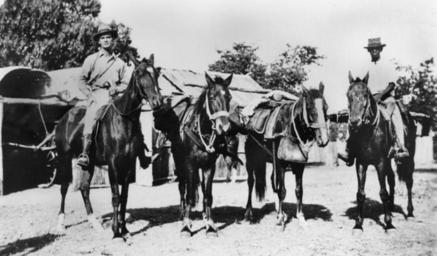 | Keywords: StateLibQld 2 129362 Medical inspector and his assistant ready for an outback trek, North Queensland, 1922.jpg taken from Hookworm disease in the western part of Northern Queensland and the Gulf Territory with reference to malaria and filaria 1922 1922 handle 10462/deriv/78199 Item is held by John Oxley Library State Library of Queensland PD-Australia StateLibQld-License Black and white photographs Riders from Australia Horses of Queensland Health in Australia 1922 in Queensland Equestrians |