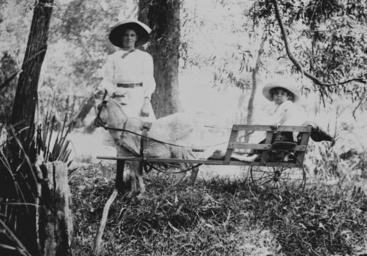 | Keywords: StateLibQld 2 130031 Woman with a child in a goat cart, 1900-1910.jpg en Woman with a child in a goat cart 1900-1910 Unidentified woman with a child in a goat cart They pose on the grass under some trees She wears a hat and a dress with a belt The child also wears a hat between 1900 1910 handle 10462/deriv/79265 Item is held by John Oxley Library State Library of Queensland PD-Australia StateLibQld-License Black and white photographs Children of Queensland Goats in Australia 1900 in Australia Goat transport Goat-drawn carts in Queensland |