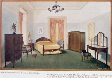 | Keywords: StateLibQld 2 136906 Furniture for H.R.H. The Duke of Gloucester built by Ed. Rosenstengel, Fortitude Valley, Brisbane, 1934.jpg supplied with photograph The furniture includes carved wooden pieces a wardrobe bed mirrored dressing table and stool occasional chairs and a highboy Edmund Rosenstengel 1887-1962 was born in Toowoomba He learnt his trade as a cabinet-maker apprenticed to the business of Rosenstengel Kleimeyer He was later to work in Sydney Auckland Vancouver and Grand Rapids USA as well as in England and Europe before returning to Toowoomba in 1911 In 1922 he came to Brisbane and commenced business on his own account in Fortitude Valley where he was to remain until his retirement in 1958 His work was distinguished by the use of Queensland timbers particularly Queensland maple and silky oak together with elaborate carving and marquetry inlay His best known public commissions include the invitation to furnish a bedroom at Government House Brisbane for the visit of the Duke of Gloucester in 1934 and a jewel case intended for the then Duchess of York Information taken from K Fahy and A Simpson Australian furniture Pictorial history and dictionary 1788-1938 1998 Rosenstengel operated out of premises located at 524 Brunswick Street Fortitude Valley from 1922 to 1958 1934 handle 10462/deriv/10816 Item is held by John Oxley Library State Library of Queensland Morden Wilfred PD-Australia StateLibQld-License Black and white photographs Bedrooms in Australia Chairs in Australia Beds in Australia 1934 in Brisbane |