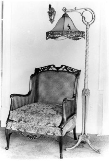 | Keywords: StateLibQld 2 136966 Lamp and arm chair built by Ed. Rosenstengel, 524 Brunswick Street, Fortitude Valley, Brisbane.jpg en Lamp and arm chair built by Ed Rosenstengel 524 Brunswick Street Fortitude Valley Brisbane Rosenstengel operated out of premises located at 524 Brunswick Street Fortitude Valley from 1922 to 1958 Lamp and chair are part of a suite made for the visit of the Duke of Gloucester to Parliament House in Queensland The chair has a carved wooden frame and cane inserts in the back and arms The seat and the separate cushion are both upholstered in a Genoa velvet 1934 handle 10462/deriv/10368 Item is held by John Oxley Library State Library of Queensland PD-Australia StateLibQld-License Black and white photographs Upholstered armchairs Chairs in Australia Lighting in Australia Floor lamps 1934 visit to Brisbane by Henry Duke of Gloucester |