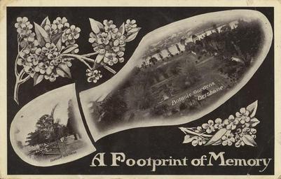 | Keywords: StateLibQld 2 139221 Footprint of memory, views of the Brisbane Botanic Gardens.jpg en Footprint of memory views of the Brisbane Botanic Gardens Shoe print shows two parts of the Botanic Gardens and is decorated with wildflowers in the corners handle 10462/deriv/12665 Copied and digitised from a postcard PD-Australia StateLibQld-License Images of postcards from the State Library of Queensland City Botanic Gardens Brisbane Black and white photographs Flowers of Australia Shoes of Australia |