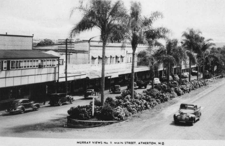 Keywords: StateLibQld 2 167767 Palm trees on the median strip on Main Street, Atherton, ca. 1949.jpg en Palm trees on the median strip on Main Street Atherton ca 1949 Murray Views Postcard no 9 showing cars angle-parked in the shopping centre on Main Street circa 1949 handle 10462/deriv/104743 Copied and digitised from an original Murray Views postcard PD-Australia StateLibQld-License Images of postcards from the State Library of Queensland Black and white photographs Walking paths in Australia Automobiles of Australia Streets in Atherton Shops in Queensland Arecaceae in Australia Arecaceae historical images Walking paths Murray Views postcard series |