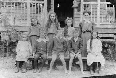 | Keywords: StateLibQld 2 177635 Serious faced group of school children at Lower Yarraman in 1908.jpg en Serious faced group of school children at Lower Yarraman in 1908 The teacher stands beside her class of boys and girls who are lined up along a school bench The boys are dressed in suits with either lace or sailor collars Two of the boys are barefoot The girls wear mid length cotton dresses dark stockings and boots or 'Mary Jane' shoes 1908 handle 10462/deriv/101974 Item is held by John Oxley Library State Library of Queensland PD-Australia StateLibQld-License Children's clothing of Australia School children of Queensland Women's clothing of Australia Black and white photographs Yarraman Queensland 1908 in Australia |