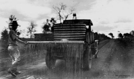 Keywords: StateLibQld 2 178455 Road watering at Wondai, Queensland, in the 1920s.jpg en Road watering at Wondai Queensland in the 1920s <br /> Early council workers watering a Wondai road from a water tank on top of a truck possibly a Chevrolet in the 1920s between 1920 1930 handle 10462/deriv/101902 Item is held by John Oxley Library State Library of Queensland PD-Australia StateLibQld-License Water containers in Australia Black and white photographs Roads in South Burnett Wondai Queensland Pickup trucks 1920 in Queensland