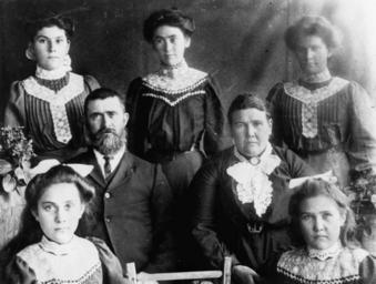 | Keywords: StateLibQld 2 191135 Family of Samuel and Sarah Heale, Yarraman, 1909.jpg supplied with photograph 1909 handle 10462/deriv/113977 Item is held by John Oxley Library State Library of Queensland PD-Australia StateLibQld-License Women's clothing of Australia Men's clothing of Australia Black and white photographs Hair fashion in Australia Portraits of Queensland Yarraman Queensland 1909 in Australia Ribbons Beards Beards in Australia Lace in portrait photographs Bows in hair Cooyar Queensland |