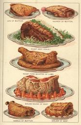 | Keywords: StateLibQld 2 191859 Elaborate cuts of roast meat presented on silver platters, 1901.jpg en Elaborate cuts of roast meat presented on silver platters 1901 Mrs Beeton was considered to be the authority in the cookery field in the colonies and hostesses aspired to serve such dishes to their guests 1901 handle 10462/deriv/114610 Copied and digitised from an image appearing in I M M Beeton Mrs Beeton's cookery book 1901 PD-Australia StateLibQld-License Platters with food Meat dishes of Australia 1901 in Queensland Mutton Lamb meat Beef Mrs Beeton's Book of Household Management Platters in art Meats in art |