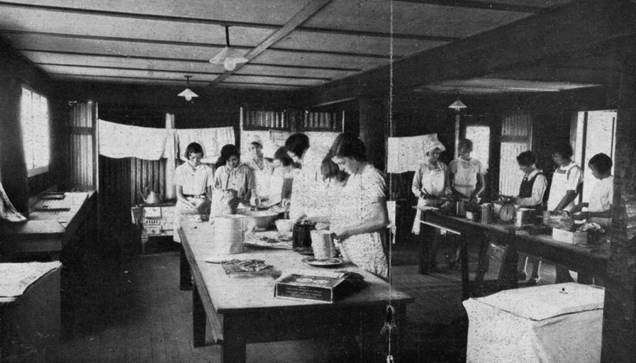 | Keywords: StateLibQld 2 192095 Cooking class at Stanthorpe State School, 1933.jpg en Cooking class at Stanthorpe State School 1933 Young ladies in the classroom standing at long tables preparing food There is an assortment of kitchen equipment being used Washing is hanging on a line at the back of the classroom 1933-03-09 handle 10462/deriv/114389 The Queenslander 9 March 1933 Contributor s The Queenslander PD-Australia StateLibQld-License Black and white photographs Workbenches in Australia Stanthorpe Queensland Girls of Australia 1933 in Australia Cooking Images from The Queenslander Cookery classes |