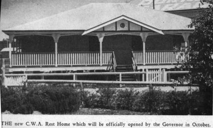 | Keywords: StateLibQld 2 197763 New Country Women's Association Rest Home in Chinchilla in 1938.jpg en New Country Women's Association Rest Home in Chinchilla in 1938 The Rest Home of the C W A pictured just prior to its official opening by the Governer in October 1938 The building is a large low-set wooden building surrounded by a fenced verandah The porch is decorated with the C W A's insignia above the entry 1938-09-28 handle 10462/deriv/95060 The Queenslander 28 November 1938 Contributor s The Queenslander PD-Australia StateLibQld-License Black and white photographs Nursing homes in Australia Buildings in Chinchilla 1938 in Queensland Images from The Queenslander Country Women's Association buildings in Queensland |
