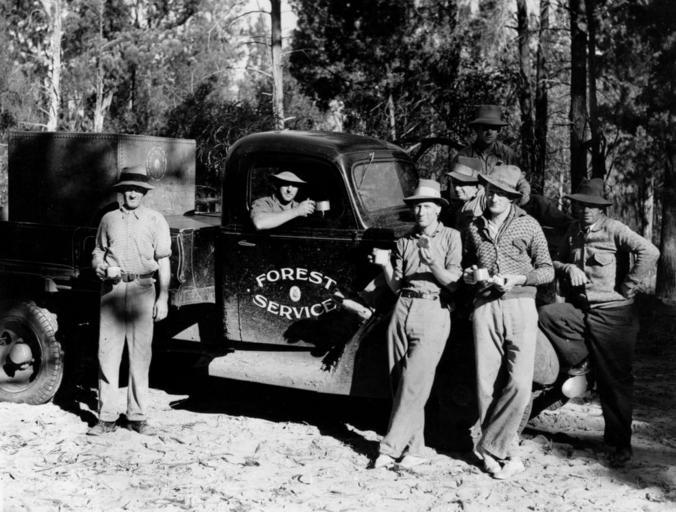 | Keywords: StateLibQld 2 201007 Members of the Forest Service enjoy a tea break by the side of the road, 1930-1940.jpg en Members of the Forest Service enjoy a tea break by the side of the road 1930-1940 between 1930 1940 handle 10462/deriv/96586 Item is held by John Oxley Library State Library of Queensland PD-Australia StateLibQld-License Manual workers of Australia 1930s in Australian society Black and white photographs Loggers from Australia Logging in Australia Cuisine of Australia Trucks in Australia Mugs |