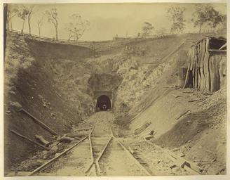 | Keywords: StateLibQld 2 234340 Tunnel No. 1 on the Stanthorpe extension line, 1882.jpg en Tunnel No 1 on the Stanthorpe extension line 1882 Railway worker emerging from the mouth of a railway tunnel The railway cutting is deep and vegetation has yet to regenerate This tunnel had several names; the Big Tunnel during construction Overend Tunnel the contractor who built the line Cherry Gully Tunnel but its proper name is the Gorge Tunnel Work commenced in June 1878 and was completed in November 1880 It has concrete lined walls and a brick arch ceiling It is 272m 858 feet in length The slug from the tunnel was used to build Gorge Dam 1882 handle 10462/deriv/37638 Item is held by John Oxley Library State Library of Queensland PD-Australia StateLibQld-License Railway cuttings in Australia Black and white photographs Railway lines in Queensland Rail tunnels in Queensland 1882 in Queensland Cherry Gully Tunnel |