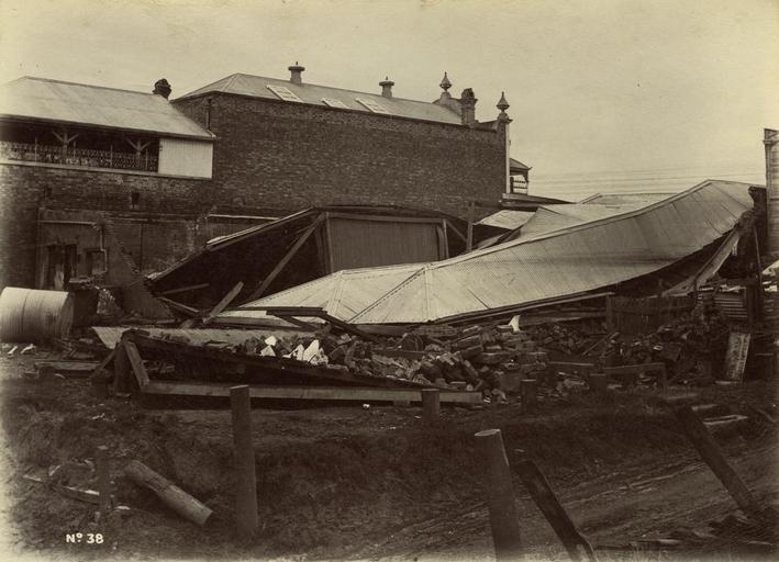 | Keywords: StateLibQld 2 241538 Kerlins general store in Stanley Street, South Brisbane after the floods of 1893.jpg en Kerlins general store in Stanley Street South Brisbane after the floods of 1893 Store is reduced to piles of bricks and twisted corrugated iron Caption under photograph reads ' Kerlins Store nearly all the good were washed away ' 1893 handle 10462/deriv/125753 Item is held by John Oxley Library State Library of Queensland PD-Australia StateLibQld-License Black and white photographs Flood damage in Queensland 1893 Brisbane flood Corrugated iron Shops Brick constructions |