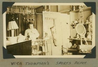 | Keywords: StateLibQld 2 246380 Vera Thompson inside her sporting goods store, Cunnamulla, 1939.jpg en Vera Thompson inside her sporting goods store Cunnamulla 1939 The interior of the store has trophies tennis racqets golf clubs and other merchandise The salesperson is behind the glass counter 1939 handle 10462/deriv/118152 Item is held by John Oxley Library State Library of Queensland Pole Clarence PD-Australia StateLibQld-License Women's clothing of Australia Tennis racquets in Australia Black and white photographs Cricket bats in Australia Cunnamulla Queensland 1939 in Australia Sports equipment Golf clubs |