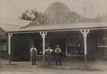 | Keywords: StateLibQld 2 253703 Workers standing outside Govers Boot and Shoe Store, Nambour, 1923.jpg en Workers standing outside Govers Boot Shoe Store Nambour 1923 1923 handle 10462/deriv/120243 Item is held by John Oxley Library State Library of Queensland PD-Australia StateLibQld-License Black and white photographs Architecture of Australia Shoemakers from Australia Shops in Queensland Nambour Queensland 1923 in Queensland Advertising signs in Queensland | ||||