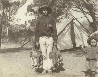 | Keywords: StateLibQld 2 255048 Father and son with the possums which have been trapped at the camp, Blackall district, 1908.jpg en Father and son with the possums which have been trapped at the camp Blackall district 1908 1908 handle 10462/deriv/40517 Item is held by John Oxley Library State Library of Queensland PD-Australia StateLibQld-License Children's clothing of Australia Men's clothing of Australia Black and white photographs Countryside in Australia Tents in Australia 1908 in Australia Phalangeriformes |