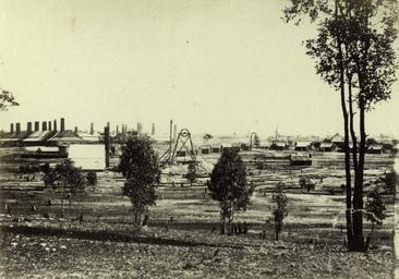 | Keywords: StateLibQld 2 257583 Copperfield mining works as seen from the manager's office, Copperifled, 1876.jpg en Copperfield mining works as seen from the manager's office Copperifled 1876 Copperfield was once a booming mining town and produced Queensland's first copper mine The mine was the first to be worked commercially outside South Australia and also the first rich mine in Queensland In 1862 a 10 feet high wall of solid copper ore was discovered at Copperfield Mining continued until the 1880's when the best quality ore was mined out Copperfield is located 5km south of Clermont in the Belyando Shire North Queensland 1876 handle 10462/deriv/34709 Item is held by John Oxley Library State Library of Queensland PD-Australia StateLibQld-License Black and white photographs Copper mining in Australia Panoramics in Queensland Copperfield Queensland Chimneys in Queensland Mines in Queensland 1876 in Queensland |