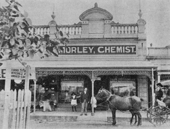 | Keywords: StateLibQld 2 290623 Front view of C. Morley's Chemist shop, Mackay, 1901.jpg en Front view of C Morley's Chemist shop Mackay 1901 Looking from the street to the front of the chemist shop A horse and buggy stand in the street and several people are standing in front of the shop on the footpath 1901-09-01 handle 10462/deriv/149472 Item is held by John Oxley Library State Library of Queensland Contributor s Queenslander Brisbane Qld 1866-1939 PD-Australia StateLibQld-License Black and white photographs Architecture of Australia Pharmacies in Queensland Horses of Queensland Shops in Mackay 1901 in Queensland Drugstores Shops |