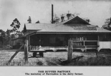 | Keywords: StateLibQld 2 294499 Butter Factory, Ravenshoe, Queensland, 1938.jpg en Butter Factory Ravenshoe Queensland 1938 This image shows the butter factory at Ravenshoe in 1938 It shows the sign on the iron roof 'The Evelyn Tableland Dairymen's Co-Operative Association Ltd ' The timber building has a wide verandah with milk cans stacked on one side A railway line appears to run directly to the building 1938 handle 10462/deriv/149798 Item is held by John Oxley Library State Library of Queensland Contributor s North Queensland register PD-Australia StateLibQld-License Black and white photographs Ravenshoe Queensland 1938 in Queensland Butter factories in Queensland Dairying Images from North Queensland Register |