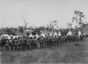| Keywords: StateLibQld 2 389393 Light-horsemen on parade in an army camp near Mundoolun, 1909.jpg supplied with photograph 1909 handle 10462/deriv/192185 Item is held by John Oxley Library State Library of Queensland Stark Will PD-Australia StateLibQld-License Military buildings in Australia Military uniforms of Australia Black and white photographs Australian Light Horse 1909 in Australia Australian Army 20th-century cavalry | ||||