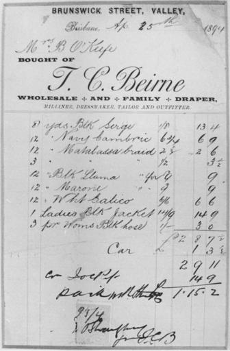| View Original: | StateLibQld 2 389753 Bill of sale from the Brisbane firm T. C. Beirne, 1894.jpg (657x1000) | |||