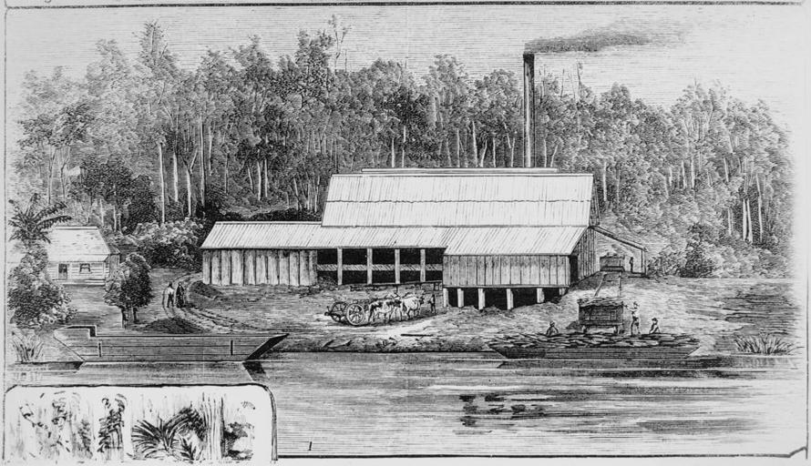 Keywords: StateLibQld 2 389933 Abbotsford Sugar Mill, Tumbulgum, 1881.jpg en Abbotsford Sugar Mill Tumbulgum 1881 Wood engraving of Abbotsford Sugar Mill showing the mill on the bank of the Tweed River with thick bushland behind 1881 handle 10462/deriv/193034 Item is held by John Oxley Library State Library of Queensland Contributor s Australian town and country journal PD-Australia StateLibQld-License Black and white photographs Tumbulgum New South Wales Sugar mills in Australia 1881 in New South Wales Sugar factories |