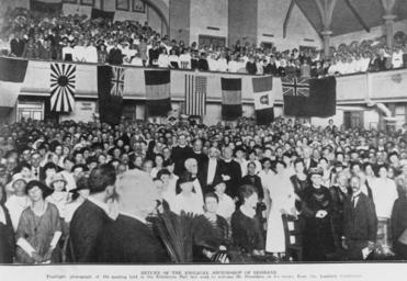 | Keywords: StateLibQld 2 393109 Meeting held in the Exhibition Hall to welcome Dr. Donaldson, Anglican Archbisop of Brisbane, on his return home from Lambert Conference, 1921.jpg en Meeting held in the Exhibition Hall to welcome Dr Donaldson Anglican Archbisop of Brisbane on his return home from Lambert Conference 1921 An Anglican congregation gathers to welcome St Clair George Donaldson Archbishop of Brisbane on his return to Brisbane in 1921 People can be seen on two levels in the Exhibition Hall Several national flags can be seen hanging from the balustrade on the second level Part of the interior architecture can be seen in the background 1921 handle 10462/deriv/192436 Item is held by John Oxley Library State Library of Queensland Contributor s Queenslander Brisbane Qld 1866-1939 PD-Australia StateLibQld-License Groups of people in Australia Black and white photographs Archbishops of the Anglican Diocese of Brisbane Christianity in Australia 1921 in Brisbane Old Museum Building Brisbane |