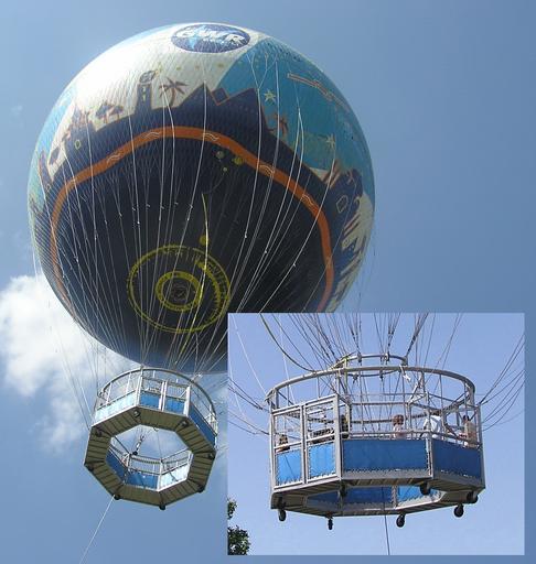 | Keywords: Static.balloon.bristol.arp.jpg A static balloon gives the public a view of the city at Castle Park Bristol England <br> This tethered balloon is unreeled to 500 feet carrying 30 passengers for a 30 minute ride <br> Registered as G-CCYF the balloon is an Aerophile 5500 filled with 194 000 cubic feet of helium gas <br> The insert shows a close up of the balloon gondola Photographed by Adrian Pingstone in July 2005 and placed in the public domain Arpingstone Tethered balloons amusement rides G-CCYF aircraft Gondolas aerostats 2005 2005 in England |