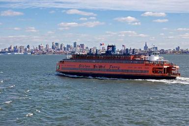 Keywords: travel new york ferry liner ship vessel water river sky blue cloud waterscape landscape house building transportation