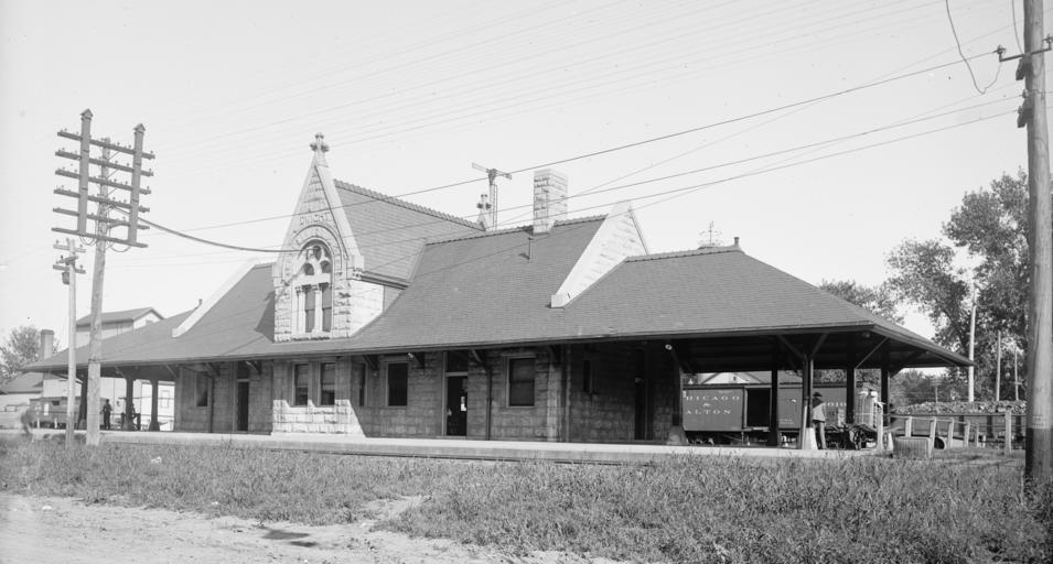 | Keywords: Station Dwight Illinois LOC det.4a20229.jpg Station at Dwight Ill LOC-image det 4a20229 ~ 1900-1905 Unnamed photographer for Detroit Publishing Co PD-Detroit Original image cropped Chicago and Alton Railroad Depot Dwight Illinois Illinois in the 1900s Black and white photographs |