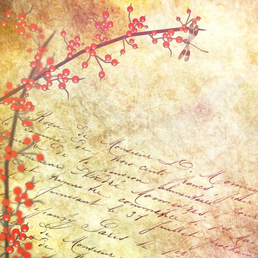 Keywords: stationery texture paper background letters handwriting font flowers flora decor antique blütenzweig branch dragonfly insect border old greeting card vintage text leave plant thorns berries grunge color postcard pattern