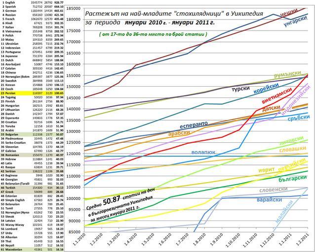 | Keywords: Statistics Wikipedia 31.01.2011.jpg en Statistics_Wikipedia_31 01 2011 bg а астване б оя на статиите в бълга оезичната Уикипедия в инте вала януа и 2010 - януа и 2011 г Класация на на астване на азноезичните Уикипедии за януа и 2011 г own Stanqo 1 2 2011 Cc-zero Wikipedia statistics by language |