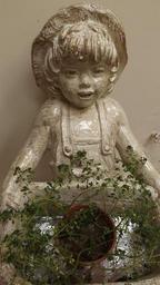 Keywords: statue figure sculpture face child girl field trim flowerpot