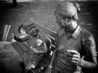 Keywords: statue grandma grandmother figure monument sculpture bronze children sugar land texas park bird watching girl