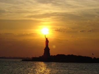 Keywords: statue of liberty new york city sunset sky clouds bay harbor water reflections nature outside beautiful silhouette silhouettes landmark famous