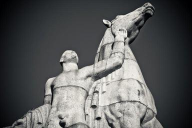 Keywords: statue monument sculpture artwork fig art landmark architecture historically düsseldorf old park city urban sculptor stone stone figure horse man horse tamer third rich nazi era black white black and white