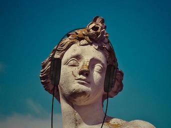 Keywords: statue music sculpture classic european listening enjoyment face stone headphones