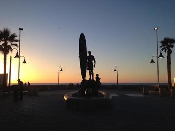 Keywords: statue surfer california tropical summer nature beach sea vacation ocean silhouettes people blue sunny sunset sky outdoor