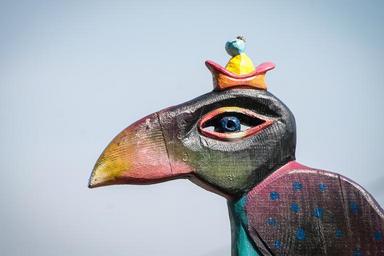 Keywords: statue wooden sculpture wood material texture bird beak spear mood carved carving folk art rural atmosphere headboard folklore