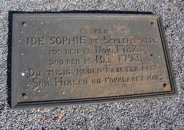 Keywords: Stavern Kirke (Schleppegrell2).JPG Gravminde fra Stavern Kirkes kirkegård over Frøken Ide Sophie de Schleppegrell fød den 13 nov 1782 død den 15 mar 1793 DU TIL IG MODEN FRUCTER BAER SOM HIMLEN NU FORKLARET HAR own 2012-08 Orf3us Stavern kirke PD-old-100