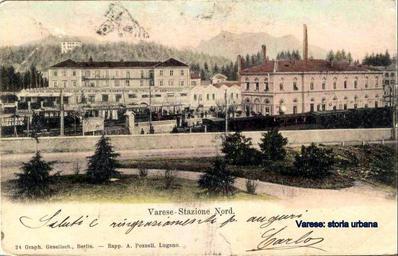 | Keywords: varese tram outdoor La stazione delle Ferrovie Nord Milano (1885) e il capolinea della tranvia per la Prima Cappella (1895) con un convoglio fermo. Di fronte alla stazione lo stabilimento del Calzaturificio di Varese e le ciminiere dei Molini Marzoli Massari. La stazione delle Ferrovie Nord Milano (1885) e il capolinea della tranvia per la Prima Cappella (1895) con un convoglio fermo. Di fronte alla stazione lo stabilimento del Calzaturificio di Varese e le ciminiere dei Molini Marzoli Massari. |