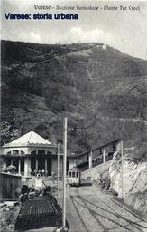 | Keywords: varese funicolare tram outdoor Immagine della stazione della funicolare di Vellone. A destra la linea per Santa Maria del Monte (aperta nel 1909) con una vettura in attesa di partire. Dietro la stazione sono visibili i lavori in corso per la costruzione della linea per il Campo dei Fiori (inaugurata nel 1911) e un deposito di materiale edile del cantiere. La cima del Campo dei Fiori è ancora priva della massiccia sagoma dell'hotel (aperto nel 1912). In primo piano il tram per Varese. Immagine della stazione della funicolare di Vellone. A destra la linea per Santa Maria del Monte (aperta nel 1909) con una vettura in attesa di partire. Dietro la stazione sono visibili i lavori in corso per la costruzione della linea per il Campo dei Fiori (inaugurata nel 1911) e un deposito di materiale edile del cantiere. La cima del Campo dei Fiori è ancora priva della massiccia sagoma dell'hotel (aperto nel 1912). In primo piano il tram per Varese. |
