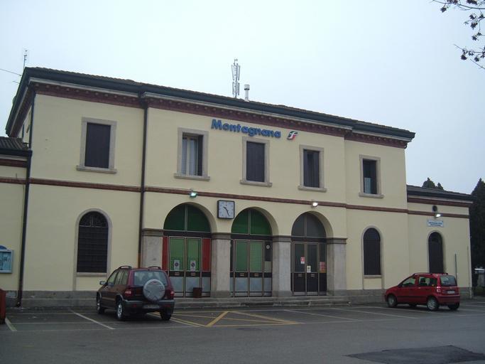 Keywords: Stazione Montagnana.JPG en Montagnana Rail Station it Stazione di Montagnana piazzale esterno own Mirko Rizzotto 08/01/2011 Montagnana train station