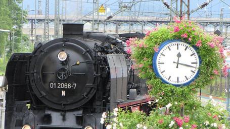Keywords: steam locomotive clock railway nostalgia departure railway station travel traffic