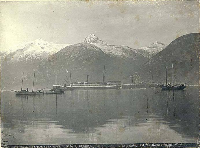 | Keywords: Steamers QUEEN and GEO W ELDER in the harbor at Skagway, Alaska, 1897 (LAROCHE 277).jpeg check categories 9 June 2016 4 Photograph Creator Frank La Roche Caption on image Steamers Queen and George W Elder at Skagway c 1897 Steamers Queen and George W Elder at Skaguay The steamer Queen which is a speedy boat and affords excellent accommodations has carried thousands of tourists to Alaska during the past excursion seasons The George W Elder which is not so commodious a boat sails direct for Portland Both vessels had just arrived at the head of steam navigation on Lynn Canal laden with crowds of gold-seekers and tons upon tons of supplies Two streams follow a natural outlet to the sea on each side of the high point of land to the right - on one side the Skaguay River on the other side the Dyea It is sometimes difficult to decide which route to take Both Dyea and Skaguay trails have advantages which appeal differently to many travelers Frank La Roche En Route to the Klondike 1898 Subjects LCTGM Ships--Alaska Skagway; Sailboats--Alaska--Skagway; Harbors--Alaska--Skagway; Mountains--Alaska--Skagway Subjects LCSH Queen Ship ; George W Elder Steamship depicted place Skagway Alaska 1897 Institution University of Washington UWASH-LAROCHE-source accession number laroche 277 PD-old-auto-1923 1936 Information field Order Number LAR197 Images from the Frank La Roche Photographs Collection to check Sailboats Ports and harbours Mountains of Alaska Skagway Alaska |