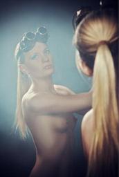 Keywords: steampunk girl breast goggly reflection mirror erotica