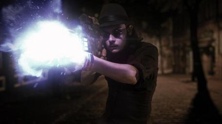Keywords: steampunk punk night scifi cyberpunk fancy man costume cosplay style victorian street vintage gothic attractive trilby technology blaster fashion handsome beard stylish shooting