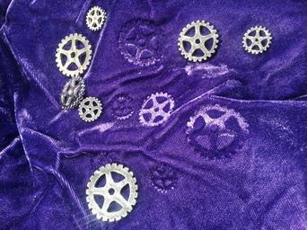 Keywords: steampunk purple silver gears embossed