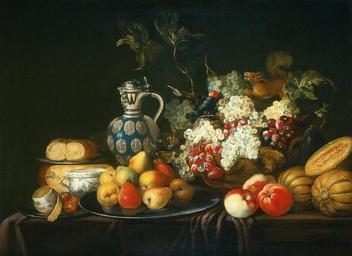 | Keywords: Stech Still life with a squirrel.jpg Artwork Creator Andreas Stech 1672-1678 fact oil canvas cm 90 122 Institution National Museum Gdańsk accession number MNG/SD/298/M object history credit line http //zbiory muzeum narodowe gda pl/en/node/291805 U_xfE8V_uJE zbiory muzeum narodowe gda pl http //www piekarska net/userfiles/stech_martwa_natura_duza jpg www piekarska net See below PD-old-100 DEFAULTSORT 1672-1678; Still life with a squirrel Paintings by Andreas Stech in the National Museum in Gdańsk 17th-century oil on panel paintings in Poland 17th-century still life paintings of fruits Baroque still life paintings of food 17th-century still life paintings of fruit baskets Still-life paintings of living animals Jars in art Paintings of baskets 17th-century still life paintings in Poland Still life paintings of bread Pumpkins in paintings Peeled fruits in art Fruit platters in art 1650s still life paintings 1658 paintings 1650s paintings in Poland jugs in art |