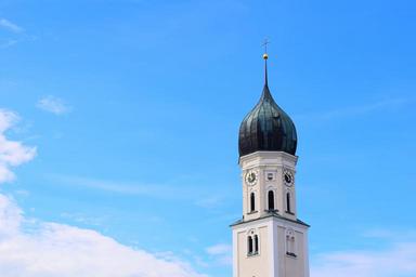 Keywords: steeple sky church clouds blue building religion faith christian symbol summer beautiful background