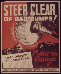 | Keywords: STEER CLEAR OF BAD BUMPS^ PROTECT THE CASINGS - NARA - 515486.tif Scope and content General notes 515486 Local identifier 44-PA-1807 Office for Emergency Management Office of War Information Domestic Operations Branch Bureau of Special Services 03/09/1943 - 09/15/1945 Still Picture Records Section Special Media Archives Services Division NWCS-S National Archives at College Park 8601 Adelphi Road College Park MD 20740-6001 1941 - 1945 Record group Record Group 44 Records of the Office of Government Reports 1932 - 1947 Record group ARC 373 World War II Posters compiled 1942 - 1945 Series ARC 513498 File unit File unit ARC Variant control numbers NAIL Control Number NWDNS-44-PA-1807 yes Other versions <gallery> File STEER_CLEAR_OF_BAD_BUMPS _PROTECT_THE_CASINGS_-_NARA_-_515486 tif tif File STEER_CLEAR_OF_BAD_BUMPS _PROTECT_THE_CASINGS_-_NARA_-_515486 jpg jpg </gallery> NARA-cooperation PD-USGov World War II posters from the United States NARA TIF images with categorized JPGs |